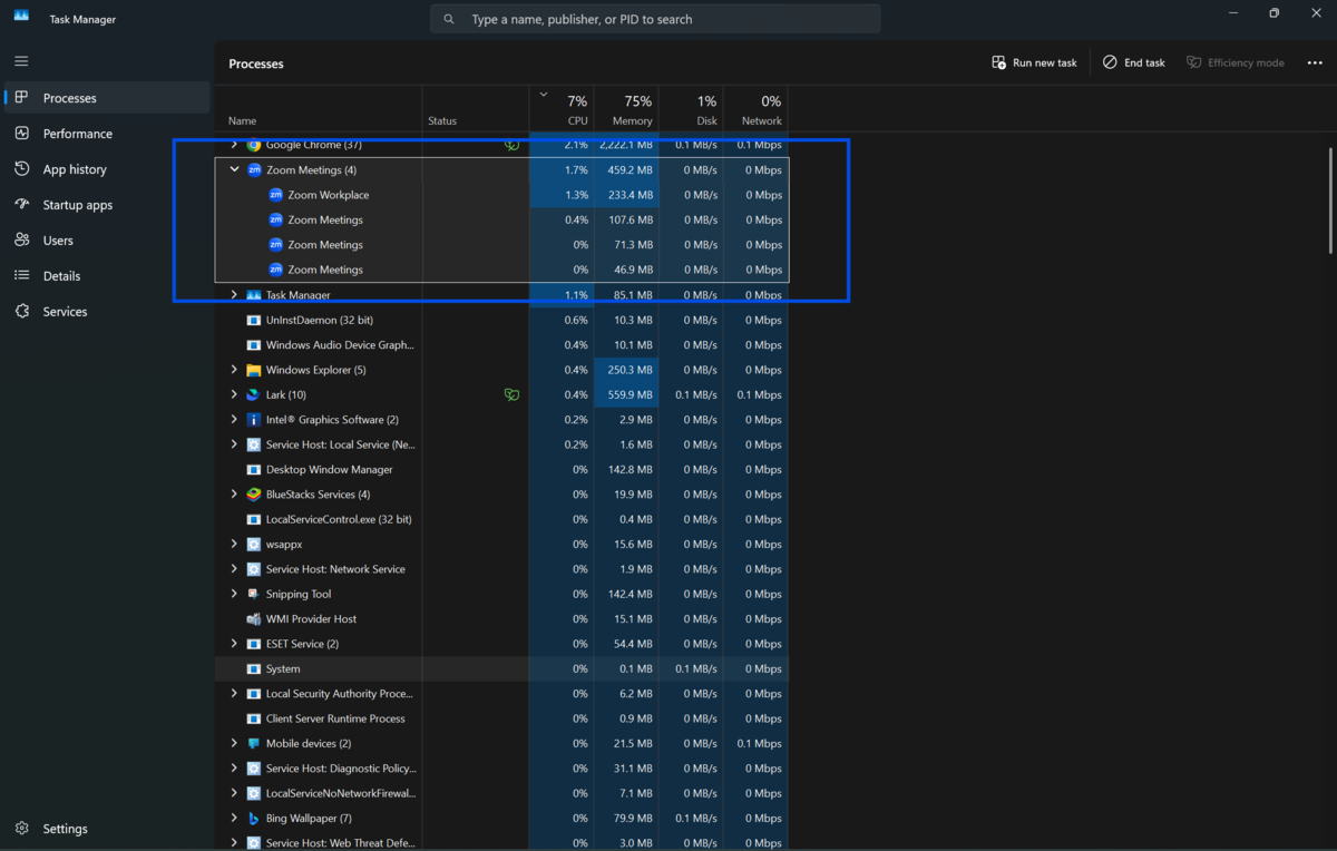 A browser with ten open tabs can consume more RAM than Zoom itself. Always check the Task Manager before a call.