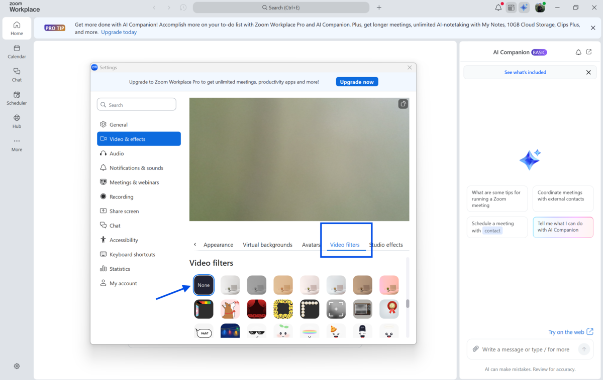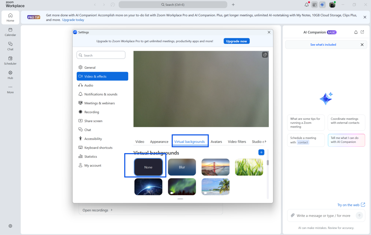 Virtual backgrounds and video filters look great, but eat up processing power. Turning them off frees up CPU resources instantly.